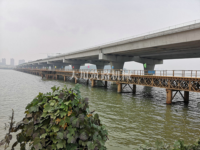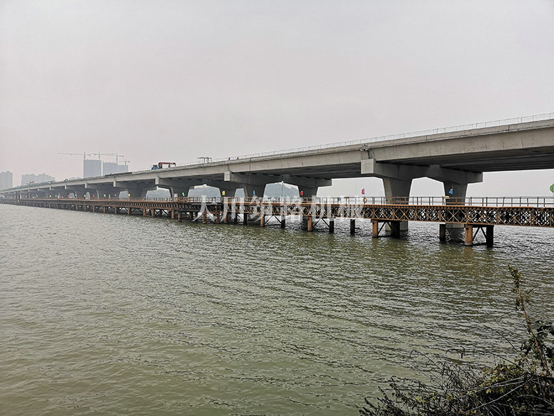 棧橋型號(hào):1200m*6m上承式棧橋及50m*50m施工平臺(tái)。