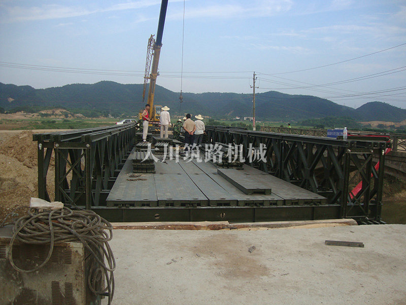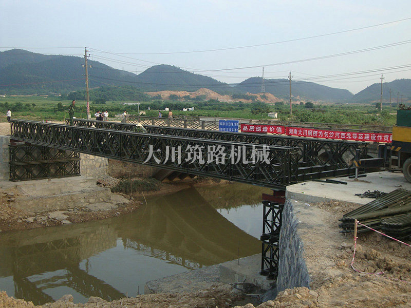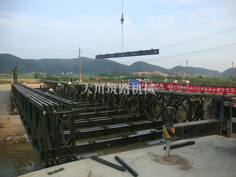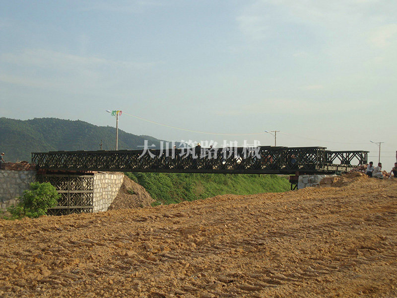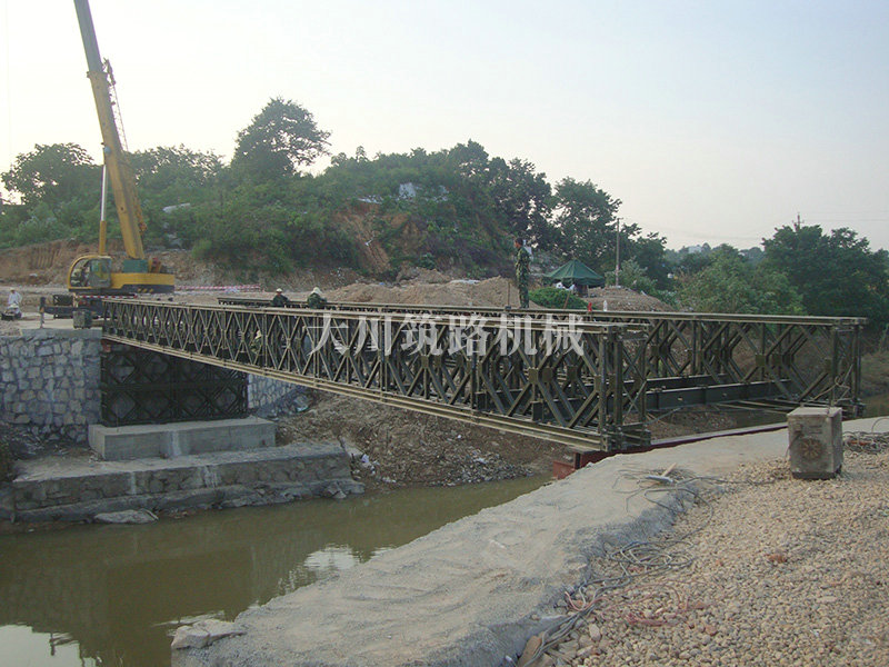 特點(diǎn):本鋼橋由國(guó)防科技大學(xué)全程指導(dǎo)和監(jiān)督安裝,滿足荷載80T施工車輛通行,因施工場(chǎng)地要求,采用貝雷梁組合式橋墩,安裝拆除方便,穩(wěn)定性好。采用推出法安裝,安裝周期20天,于2011年5月25日通車。