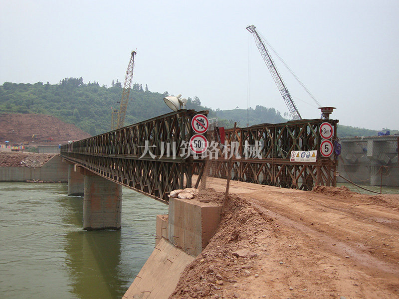 特點(diǎn):滿(mǎn)足荷載50T施工車(chē)輛的通行要求。本鋼橋安裝條件復(fù)雜,工期特別緊,我公司精心安排,合理組織,按時(shí)完成了安裝任務(wù)。采用推出吊裝法和推出法結(jié)合安裝,安裝周期23天,通過(guò)中南大學(xué)下屬專(zhuān)業(yè)檢測(cè)機(jī)構(gòu)檢測(cè)。