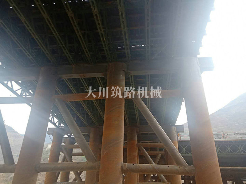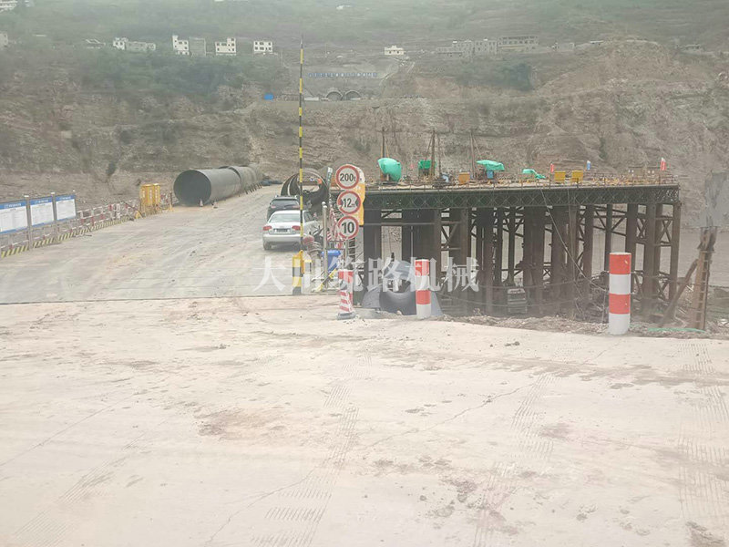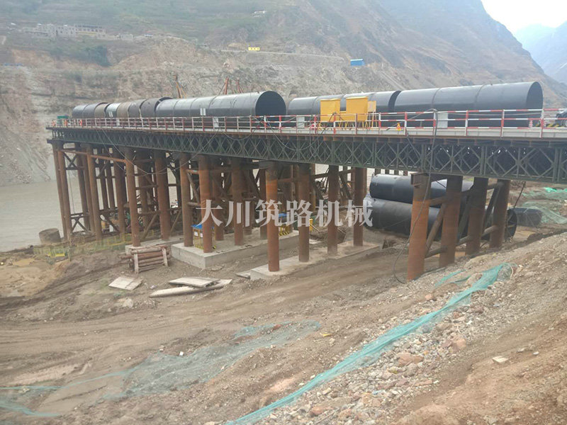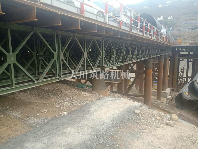 棧橋型號:便橋采用(4×12m)+3m+9m+(2×12m)+3m,9跨貝雷架鋼便橋,橋梁全長88.7m,橋梁寬度12m。
